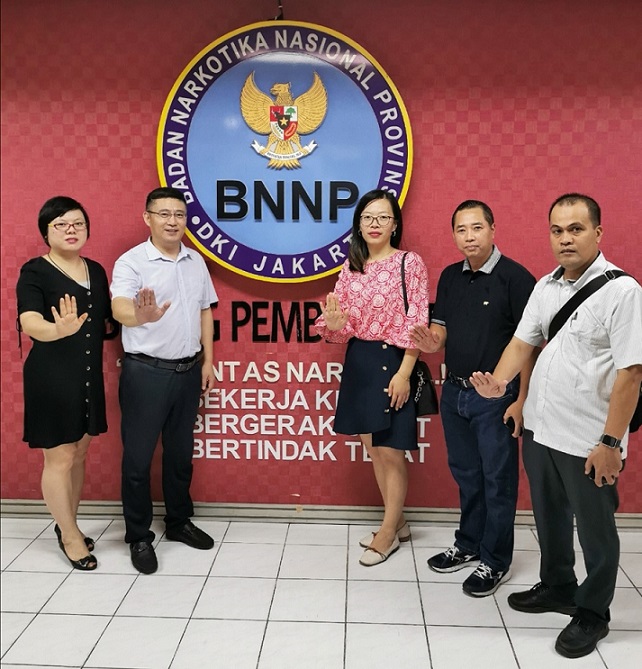 在印度尼西亞期間,我公司代表團和由國家禁毒委員會副秘書長、中國禁毒基金會秘書長李憲輝率領(lǐng)的國家禁毒委代表團一起參觀了印度尼西亞麗都國家禁毒中心所屬的禁毒培訓(xùn)中心、國家毒品實驗室和禁毒康復(fù)中心,了解了印度尼西亞毒品預(yù)防教育、禁毒培訓(xùn)、毒品濫用監(jiān)測、和戒毒康復(fù)等工作情況。同時應(yīng)客戶邀請下,國家禁毒委同我公司貿(mào)易團隊一起參觀了客戶公司,了解毒檢產(chǎn)品在印尼市場的銷售情況。